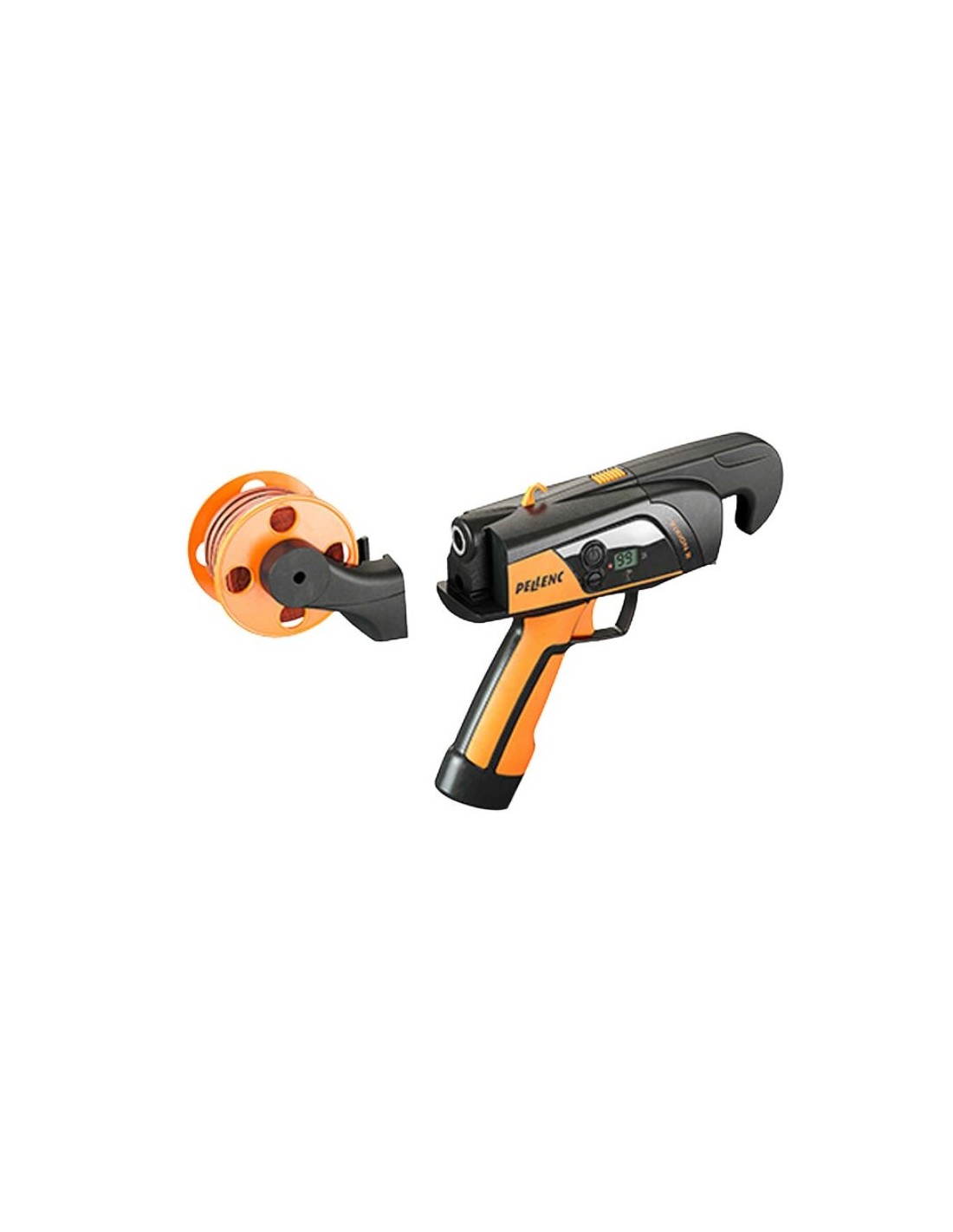 Porta bobinas de 200 metros en el cinturón exclusivo de Pellenc con nuevo sistema de sujeción del rollo al sacar el hilo, porta rollos de 60 metros incluido en la propia maquina “disponible como accesorio” el porta rollos de 200 metros en la propia máquina.